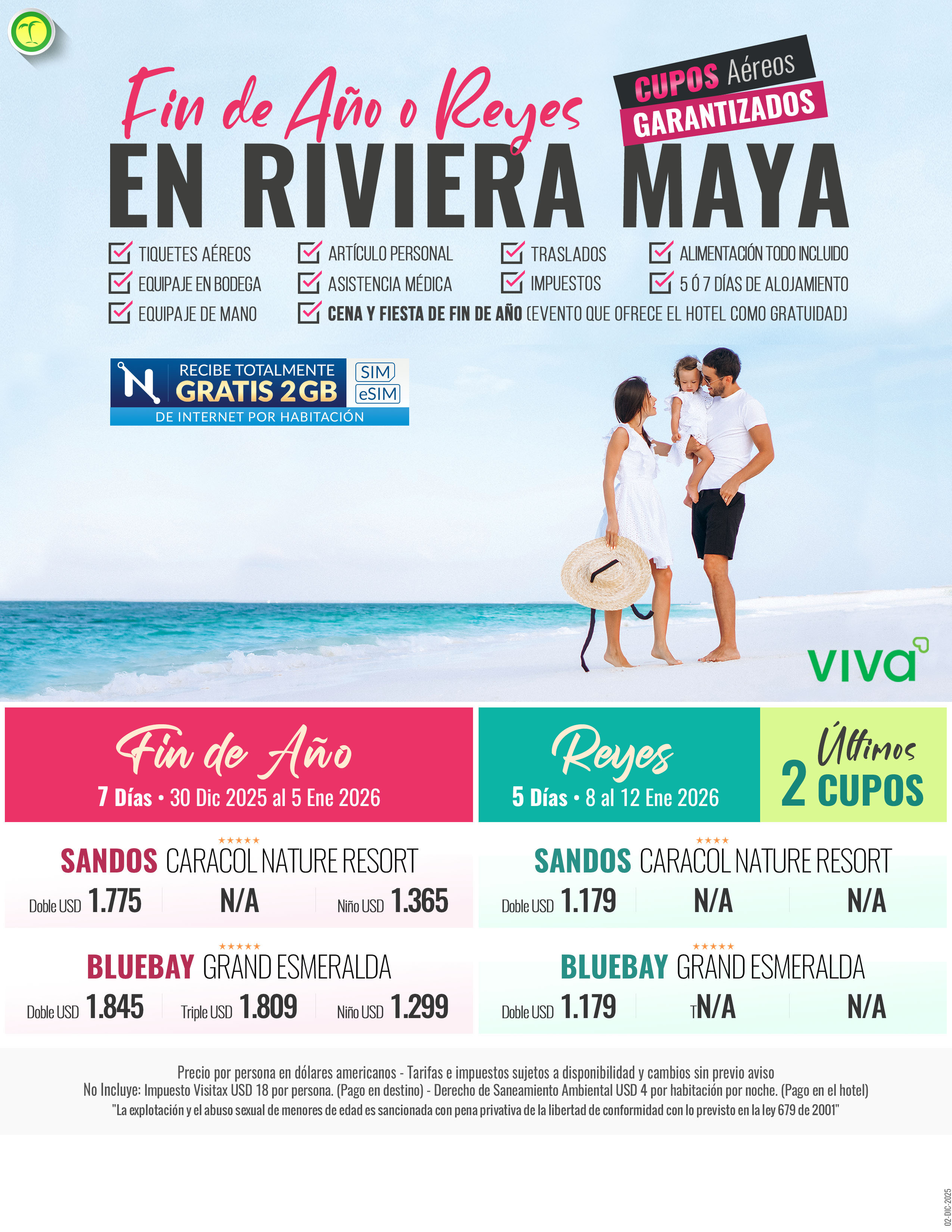 Cancún o Riviera Maya Fin de Año Viva Aerobus 2025