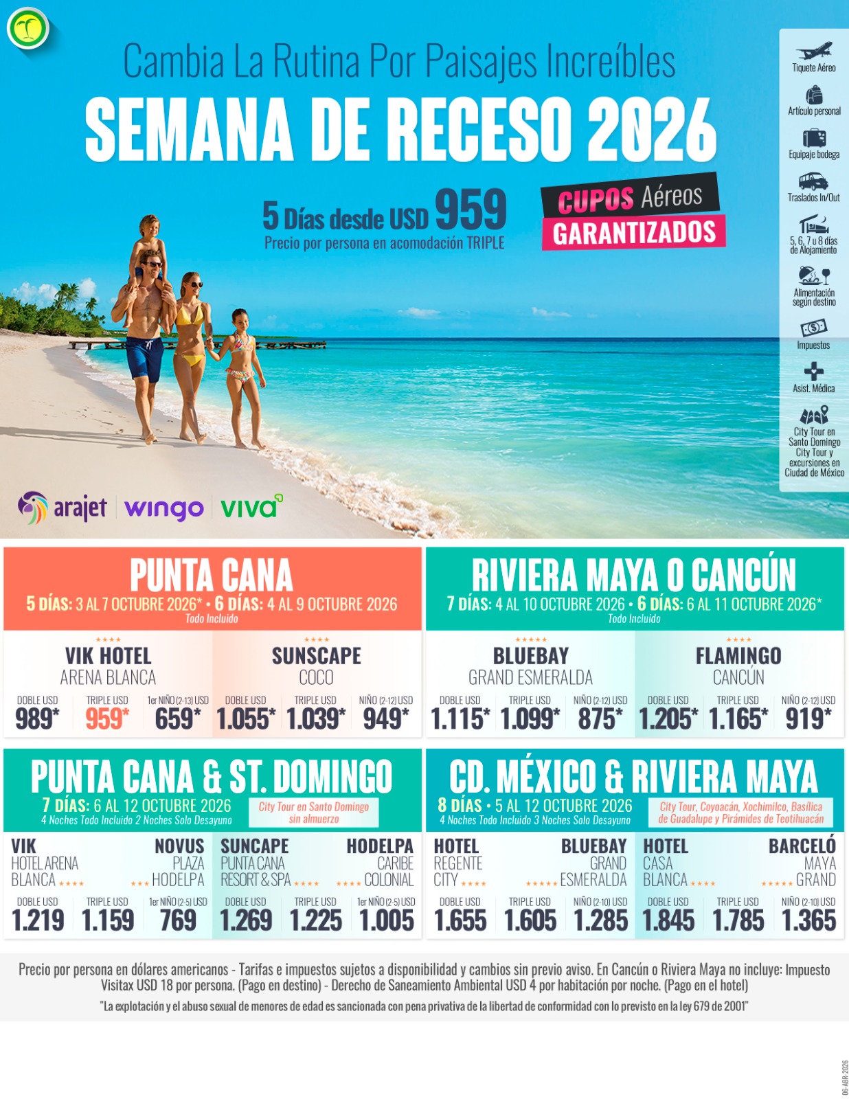 Semana de Receso Combinado Punta Cana & St Domingo 2026 Arajet