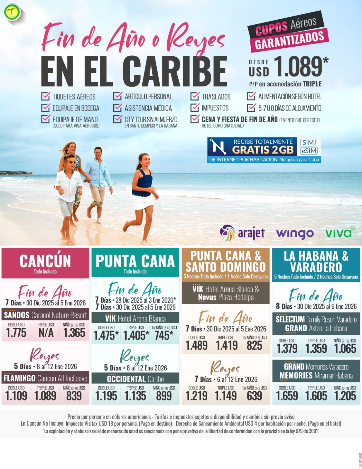 *Tarifas y disponibilidad sujetas a confirmación previa por parte del alojamiento, aerolínea. Tarifas en Dólar Estadounidense.