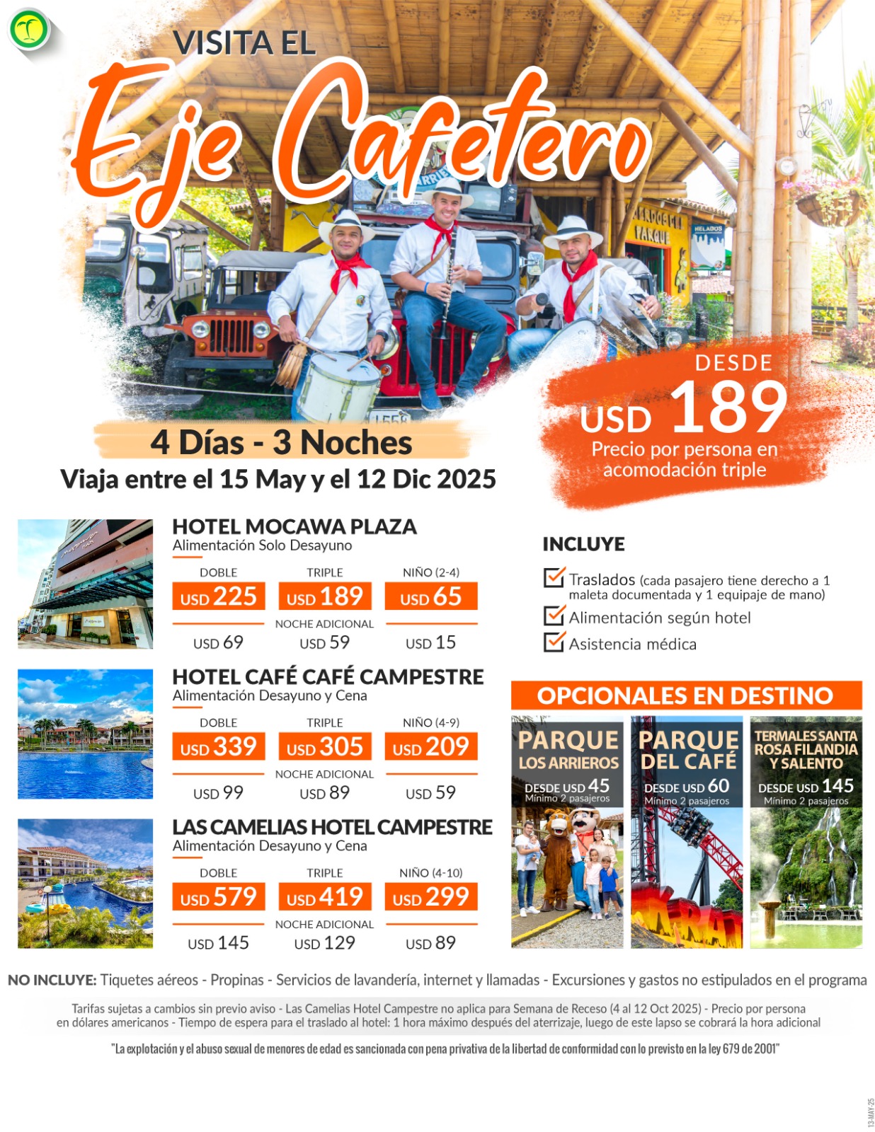| 10 Sep y al 12 Dic 2025 | U$ 429 | U$ 225 | U$ 189 | U$ 65 |