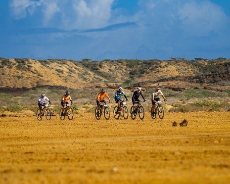 - Transporte terrestre desde Riohacha hasta el Cabo de la Vela para todos los participantes y bicicletas.